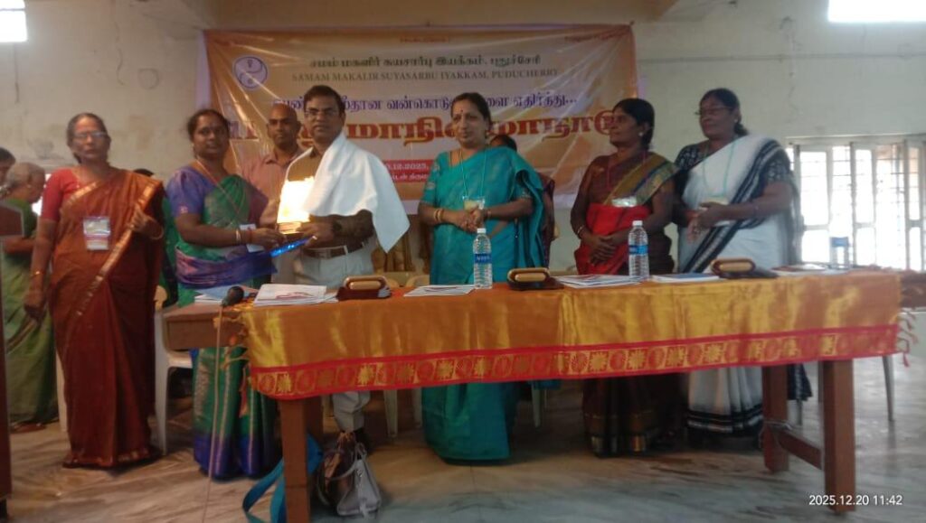 The 11th State Conference of Samam Magalir Suyasarbu Iyakkam (Samam Womens Self Help Movement) was held on December 20th at Naveena Gardens Auditorium in Puducherry. Over 300 women delegates elected from the over 3000 women members participated in this conference. Leading office bearers of Tamil Nadu AIDWA, and of Puducherry Science Forum also greeted this conference. The conference reviewed the work of the last two years and charted the way forward.
